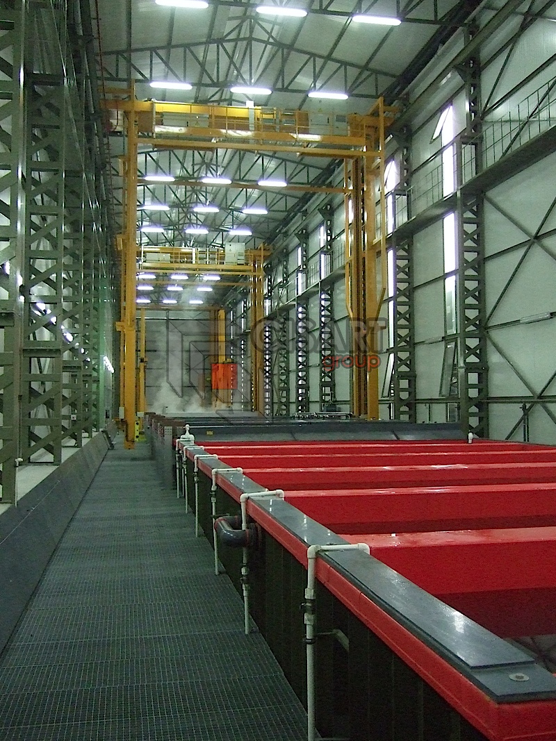 -建筑用鋁型材的陽極氧化和電解著色生產(chǎn)線,有水平和垂直兩種形式;