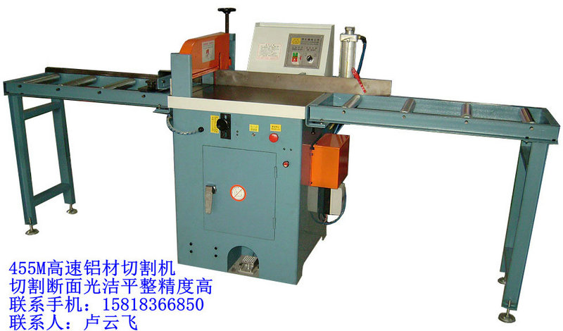 專業(yè)的鋁合金切割機,高效,高精度,安全可靠,與傳統手動鋁合金切割機有很大區(qū)別,此款鋁合金切割機重300公斤,腳踏式開關半自動機型,兩邊配有托料架,機身采用板金制作,鋸片為隱藏式,從下面往上進刀切割,鋸片主軸為進口配件,主軸轉速達3200轉每分鐘,機器有自動噴霧潤滑裝置,切割鋁材斷口光滑平整,精度高,適合大部份鋁合金型材零配件切割下料,如鋁散熱片,鋁硬盤外殼,LED燈頭鋁材,此款鋁合金切割機也可以切割銅材、塑膠、亞克力等非金屬材料。
