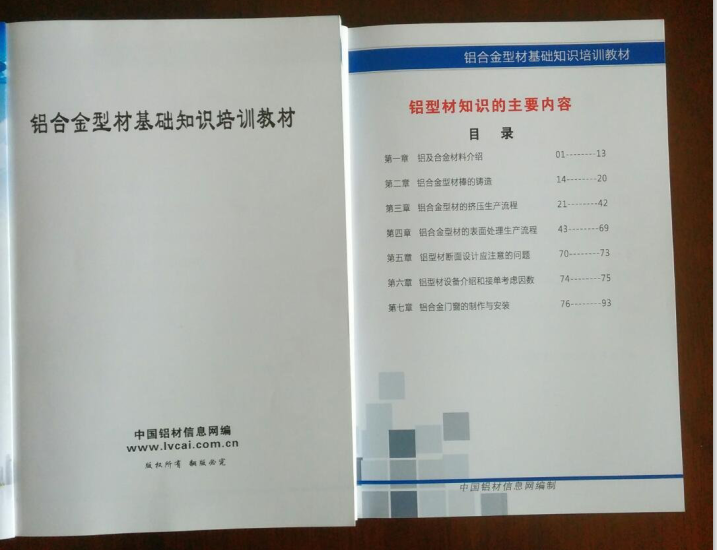 《鋁合金型材基礎(chǔ)知識(shí)培訓(xùn)教材》是由中國(guó)鋁材信息網(wǎng)(www.efvfvr.cn)整理匯編,該教材相比以前版本對(duì)資料內(nèi)容進(jìn)行了優(yōu)選、充實(shí),圖書采用的是精裝32K銅版紙彩色印刷,該教材共分七大章,內(nèi)容涵蓋:鋁及合金材料介紹、鋁合金型材棒的鑄造、 鋁合金型材的擠壓生產(chǎn)流程、鋁合金型材的表面處理生產(chǎn)流程、 鋁合金型材斷面設(shè)計(jì)應(yīng)注意的問題、鋁型材設(shè)備介紹和接單考慮因數(shù) 、鋁合金門窗制作與安裝等。教材圖文并茂,通俗易懂,適合各年齡、學(xué)歷層次人群閱讀。歡迎廣大鋁合金型材從業(yè)者與中國(guó)鋁材信息網(wǎng)進(jìn)行交流和學(xué)習(xí)(網(wǎng)站微信號(hào)zglcxxw)。此教材售價(jià)為100元(含郵費(fèi)),團(tuán)購(gòu)50本以上打8折。聯(lián)系電話:0714-8765286。