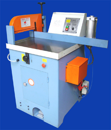455SA半自動高速鋁材切割機(jī),采用鎢鋼圓鋸片切割,機(jī)器鋸片轉(zhuǎn)速每分鐘3200轉(zhuǎn),切割鋁材斷面光潔無毛邊,斷面不需再加工,機(jī)器安全性能良好,腳踏氣動開關(guān),鋸片由下往上切割,安全可靠,特別適合鋁制產(chǎn)品切割下料,散熱鋁材,電腦U盤,MP3外殼鋁材等各種銅鋁制及非金屬產(chǎn)品精度有要求的切割下料。 特點(diǎn): 1.隱藏式鋸片,低噪音,安全性高。 2.腳踏式開關(guān),自動壓料,鋸料。 3.使用12mm橡膠塊壓料,不易損壞工件 4.可單支或多支一起鋸切。 5.800mm長入料導(dǎo)板可提高鋸切精度。 6.自動兩側(cè)噴油,油量可分開調(diào)整,切面無毛邊,鋸片更耐用。 7. 本機(jī)器經(jīng)電腦機(jī)械加工,鋸切精確度高,且操作簡易