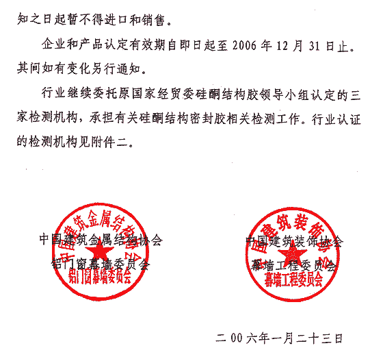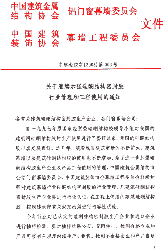 關(guān)于繼續(xù)加強(qiáng)硅酮結(jié)構(gòu)密封膠行業(yè)管理和工程使用的通知
